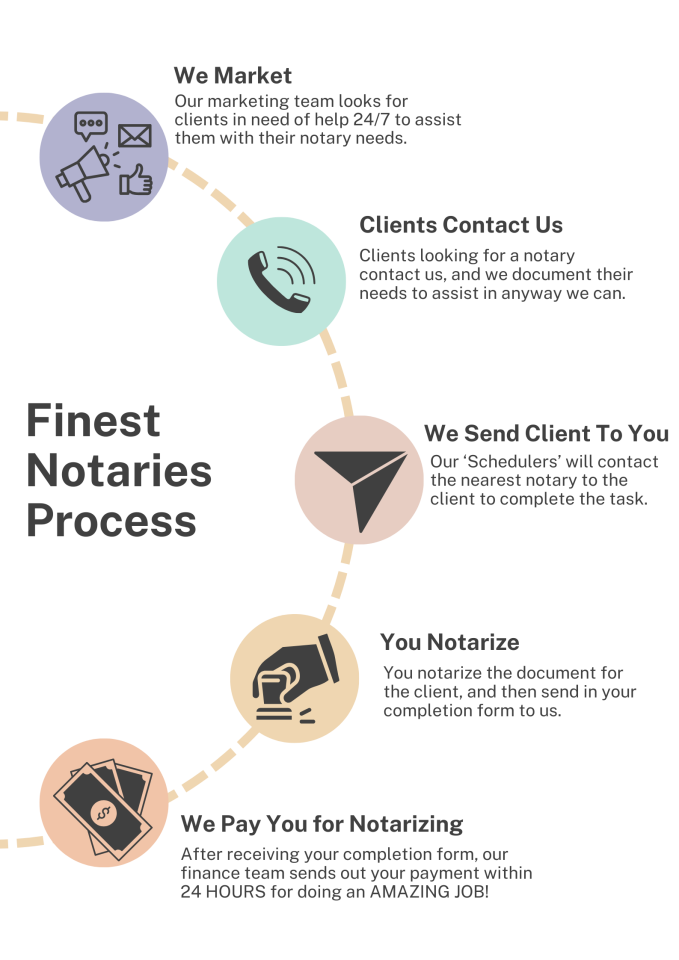 Joining our notary team means you can focus on what you do best – notarizing documents. Through our platform, clients in your area looking for notary services will be directed to you. No need to worry about promoting yourself or spending time on marketing efforts; we handle everything to ensure you have a steady stream of clients, allowing you to concentrate on delivering top-notch notary services.